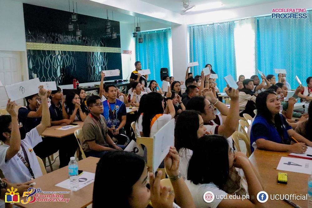 “I believe in success in progress, learning the experiences and lessons you have learned that helps you to continue to accelerate yourself and accelerate progress itself. So, first let's look back on the world view of Dr. Pedro T. Orata which was education for all for life and throughout life. So, that’s why I believe that progress especially in today's generation, change is constant we need that’s why I want to empower each and everyone of you and to create, as an ambassador of UCU, an adaptable and sustainable environment for there’s love, peace, compassion, respect, unity, and tolerance because through this, we can become the embodiment perfect reflection of our University and that is the noble identity,” he elaborated.