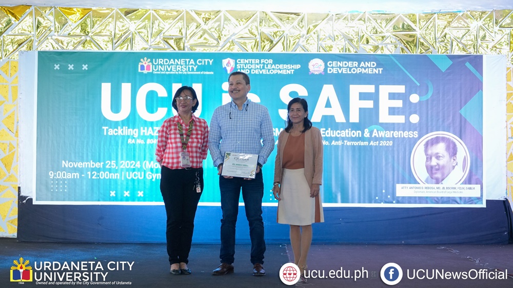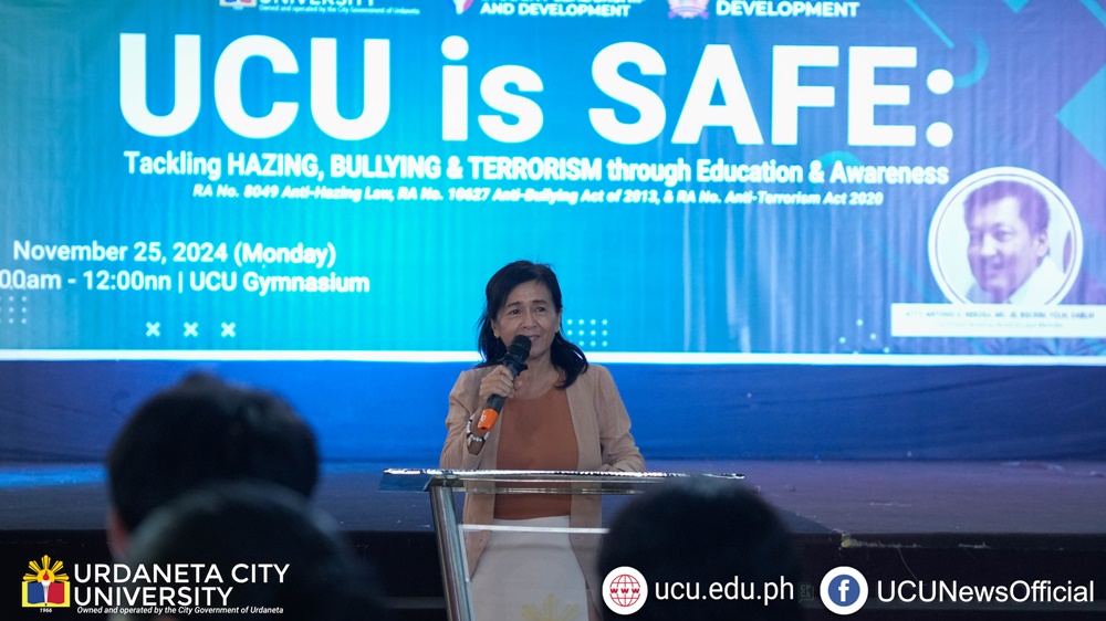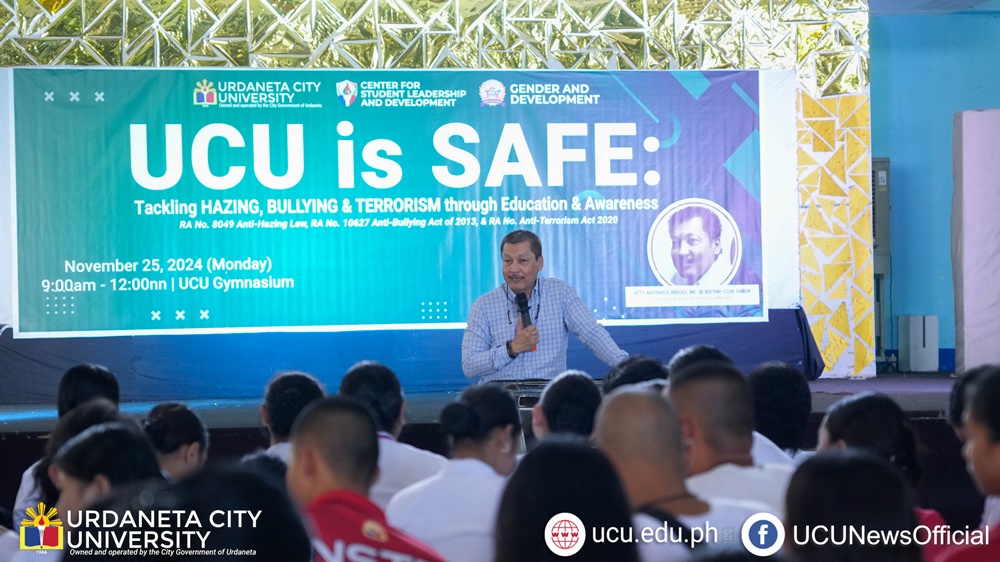 Urdaneta City University, with the aim to promote and instill the vital role of safe space within the academic community, hosted a seminar entitled "UCU IS SAFE: Tackling Hazing, Bullying, and Terrorism through Education and Awareness,” bringing together students, faculty, and staff to address critical social issues, on November 25, 2024 at the University Gymnasium.